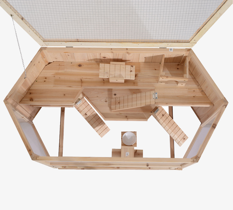 Dieser Kleintierkäfig ist für den Zweck entwickelt worden, Ihrem Kleintier die höchst mögliche Abwechslung und Freude zu bereiten. Der Holzkäfig ist aus robustem, lasiertem Tannenholz gefertigt, sodass er gleichermaßen strapazierfähig und umweltfreundlich ist. Auf 3 Ebenen wird Ihrem Kleintier viel Abwechslung geboten. Jede Ebene ist über eine Lauframpe erreichbar.
